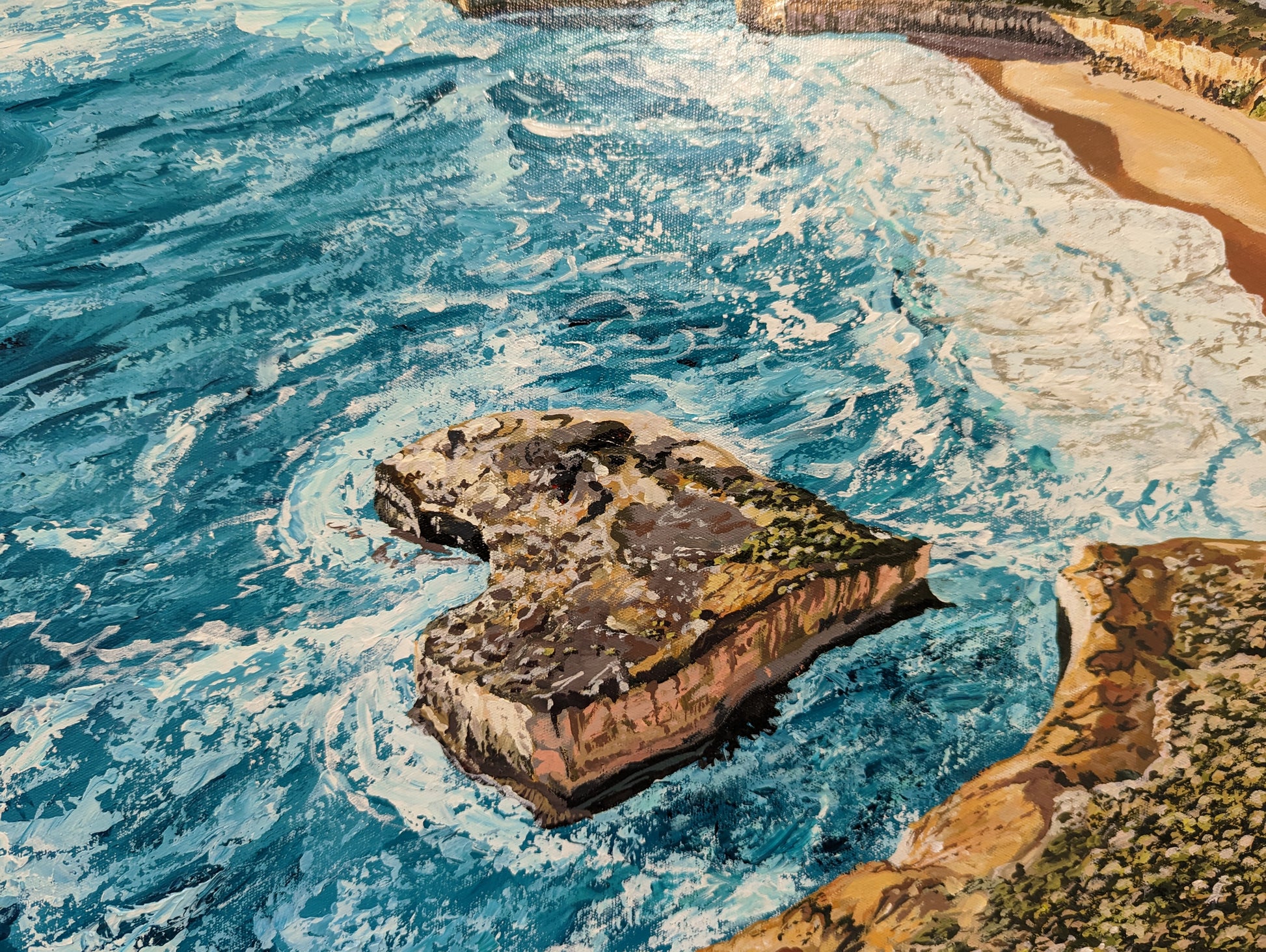 Acrylic on canvas painting of the unique London Bridge sea stack and Great Ocean Road coast. I did not know London Bridge was heart shaped until I saw the photo I used as reference - taken from the sky!