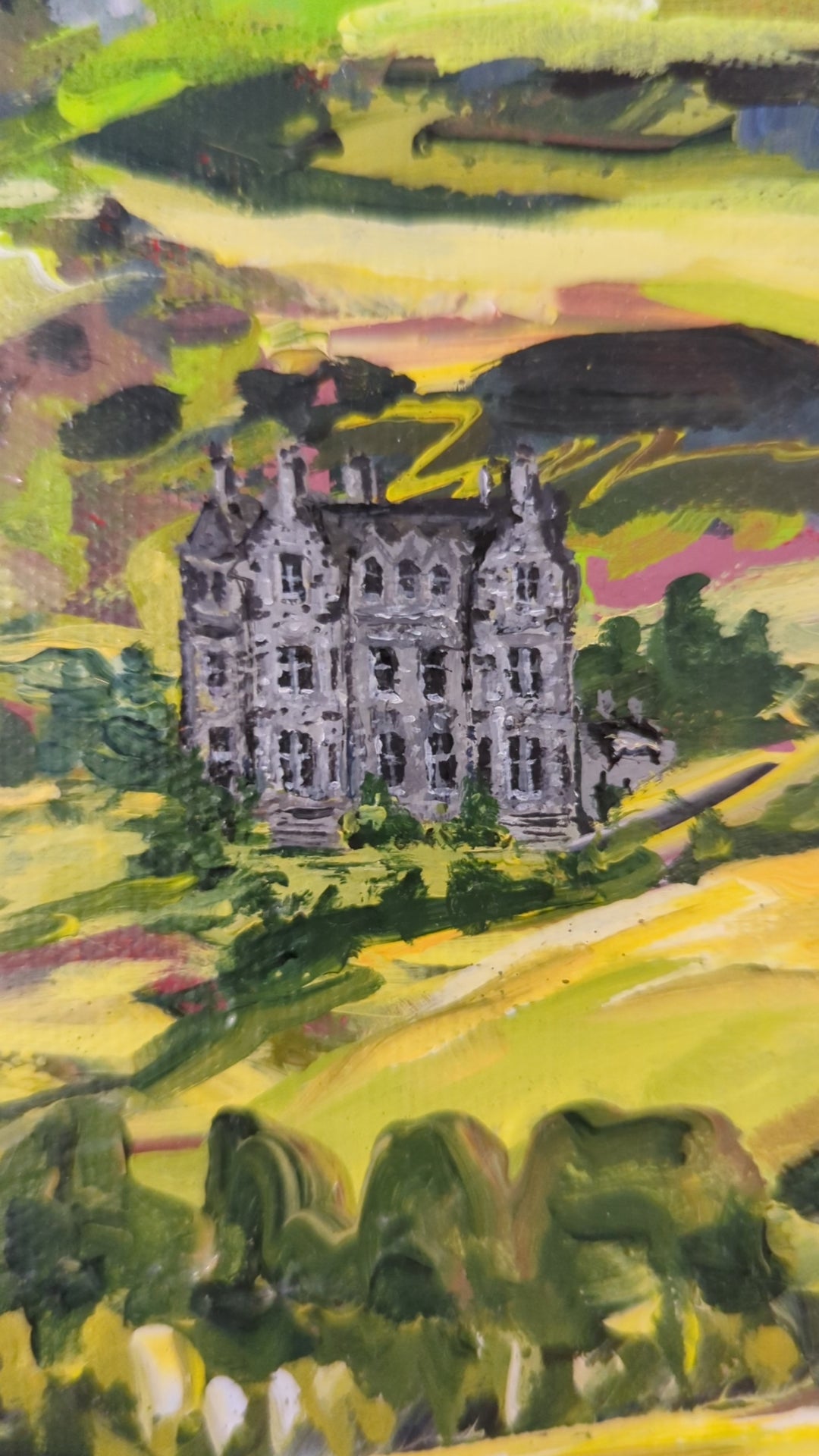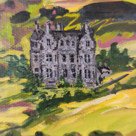This painting is inspired by the book Feast by Emily o'Grady which is set in the luscious greens of the Scottish highlands. It's based around a luxurious yet curious house, isolated and full of stories.